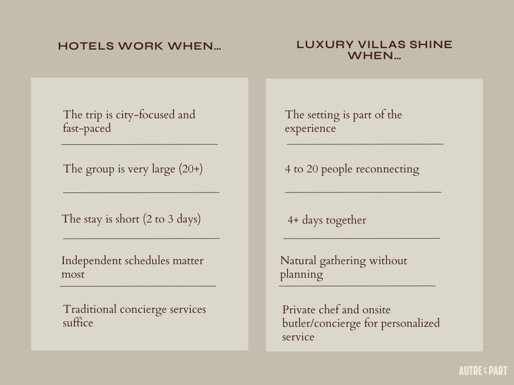 Hotels vs. Luxury Villas: Quick Reference