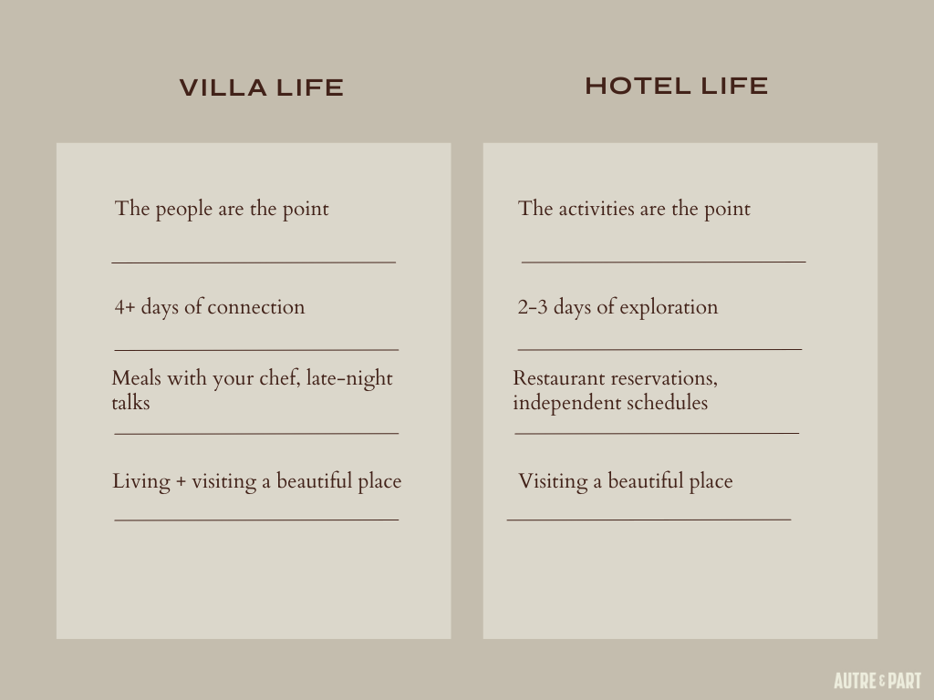 Autre & Part is launching soon to make finding these places easier through curated villas, thoughtful planning, and group travel that feels natural rather than forced.